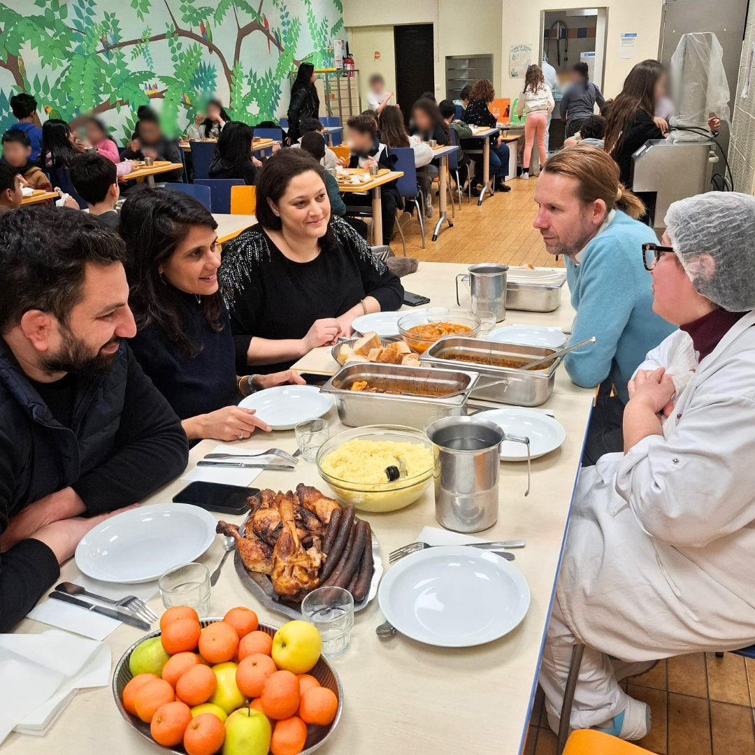 Ce moment a également permis de convier la Présidente de l’association des parents d’élèves de l’école Boissière, afin de rencontrer la nouvelle équipe de restauration scolaire et d’échanger avec l’équipe pédagogique autour du temps de la cantine, en présence de Samia Badat Karam, Première ajointe au Maire du 16ème, en charge de la Caisse des Ecoles.
